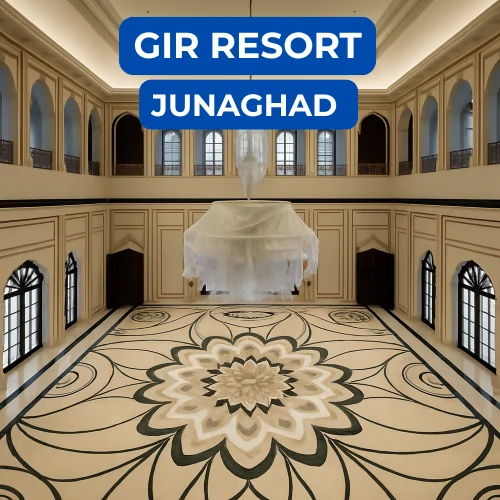 CultCraft, serving as a sub-contractor, executed intricately carved 2D and 3D wall panels and floor inlays for Gir Resort, Junagadh. Using a refined mix of marble, wood, and brass, the design language embraced organic elegance to complement the natural surroundings. Each detail was precision-crafted to enhance the resort’s calm and luxurious atmosphere, blending artistic craftsmanship with durable, high-end finishes that reflect CultCraft’s commitment to quality and design excellence.
